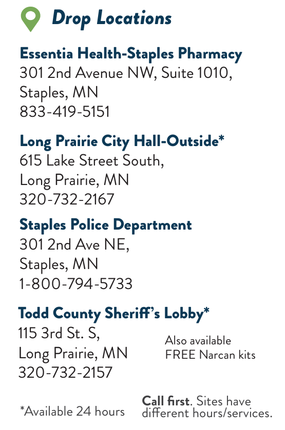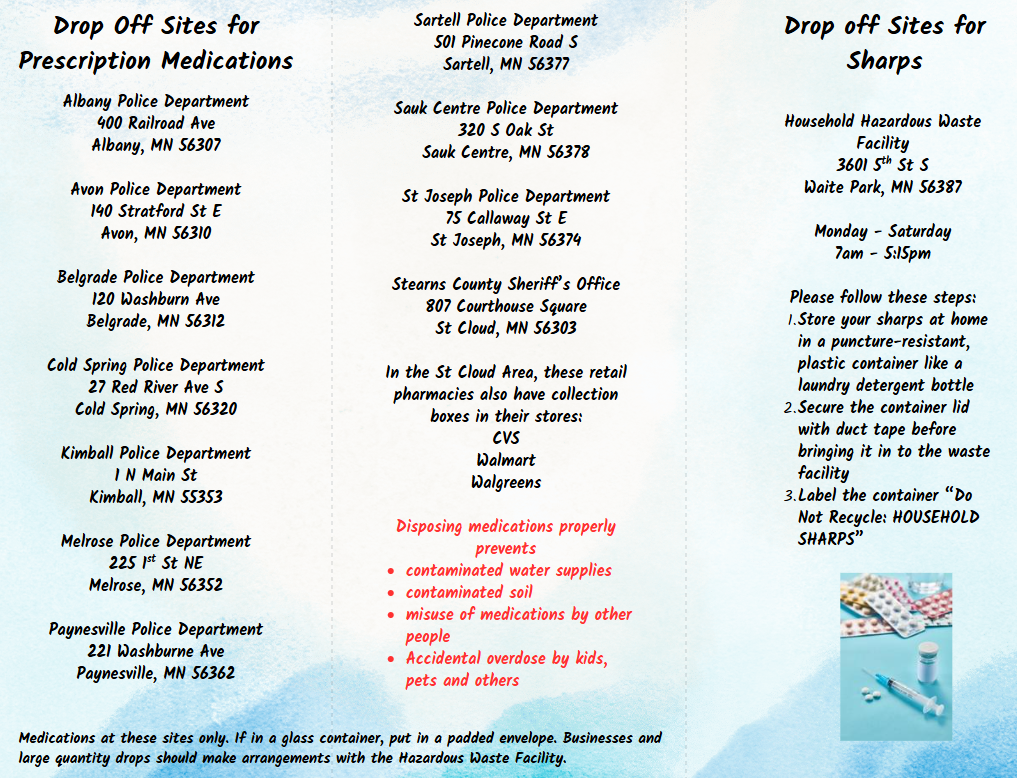 Take back events: April 26th & October 24th 2026, 10am-2pm